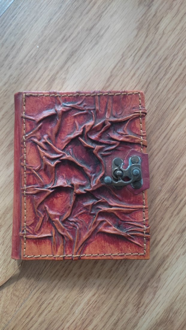 Bordo dokulu deri kapaklı ve metal kilitli küçük boy defter .