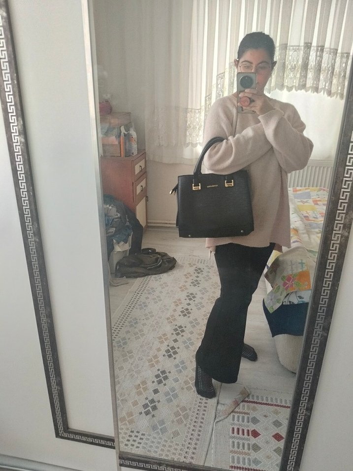 Kilitli detaylı camel renginde deri çanta, desensiz ve sade tasarımıyla günlük kullanım için uygundur.