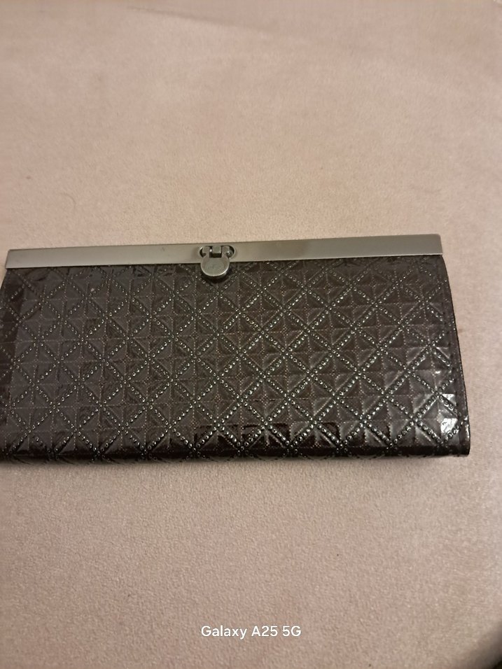 Kilitli kapama ve yılan derisi desenli koyu kahve deri kadın portföy cüzdan, modern klasik tarzı ve günlük kullanıma uygundur.