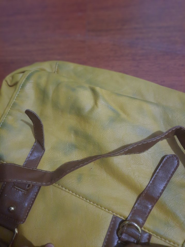 Parlak kahverengi deriden yapılmış kadın çantası, kilitli kayışlara sahip ve minimalist bohem tarzında, günlük kullanım için uygun.