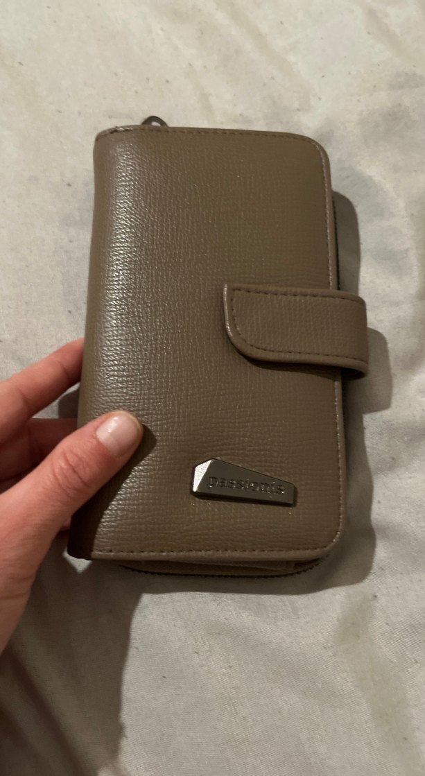 Kahverengi deri kadın cüzdanı, fermuarlı ve kilitli tasarıma sahiptir. Minimalist ve desenizdir, günlük kullanıma uygundur.