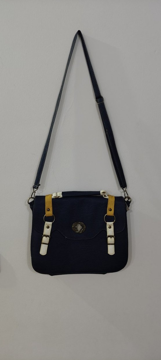 Kilitli kayışlara ve baskılı tasarıma sahip lacivert deri kadın çantasıdır. Günlük kullanımda trend sokak modasına uygundur. eni 31 cm boyu 25 cm'dir