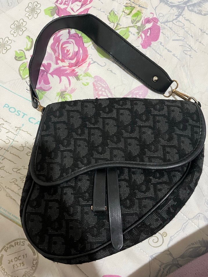 Sentetik kumaştan, baskılı desene ve kilitli kapaklı siyah kadın omuz çantası. Günlük kullanım için uygun, trend sokak stiliyle uyumlu. Orjinal değil