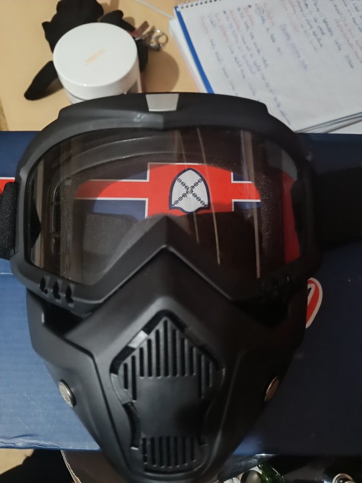 Siyah renkli, kilitli tasarıma sahip plastik biker motosiklet kaskı, koyu renkli grunge punk tarzıyla dikkat çekiyor. ️