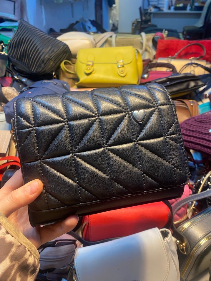 Kilitli tasarıma ve küçük kalp detayına sahip siyah deri kadın çantasıdır. Sokak stili ve günlük kullanıma uygundur.
