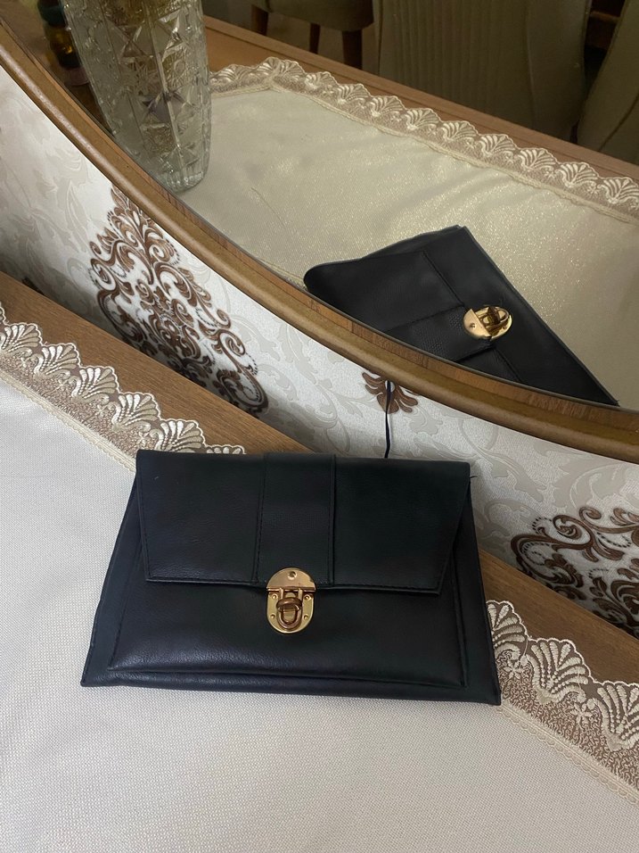 Kilitli kapaklı siyah deri çanta, vintage tarzıyla klasik şıklığı yansıtır. Paris esintili, desen içermeyen yüzeyi günlük kullanıma uygundur.