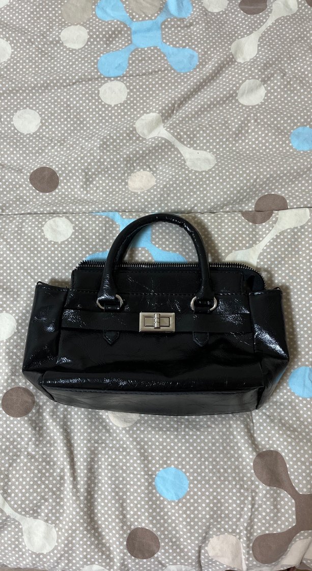 Siyah deri kadın çanta, kilitli tokasıyla sade ve desensiz tasarıma sahip. Günlük kullanım için uygun, gotik ve Parisli tarzına hitap eder.
