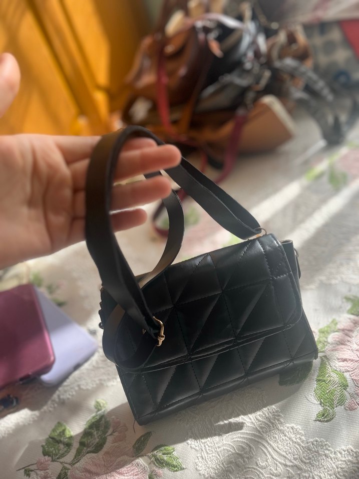 Kilitli tasarıma sahip siyah deri kadın çantası, desen içermeyen şık görünümüyle sokak modasına uygun.