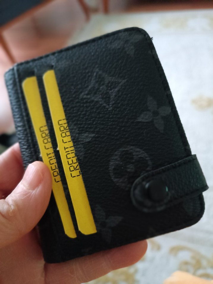 Siyah deri, kilitli kadın cüzdanı, baskılı desenli, günlük kullanım için sade ve temel tarzda. suni deri