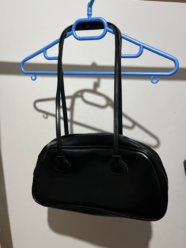 Dünyayı gezeceğim için kıyafetlerimi satıyorum. Ürünü alarak bana destek olursanız çok mutlu olurum.❤️ Kilitli detaylı siyah deri kadın çantası, minimalist ve goth tarzda, günlük kullanıma uygun uzun saplı tasarım.