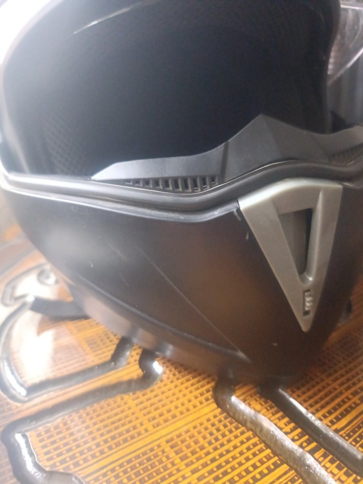 Kilitli kayışa sahip siyah desenli motosiklet kaskı, dayanıklı plastikten üretilmiş ve avant-garde tarzında, rock punk havası taşıyor. ️