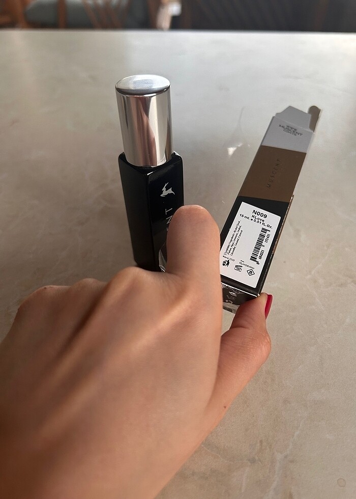 Bi kez sıktım. Kokusu çok kalıcı ve yayılımlı. Tatlı/vanilyalı bi parfüm 15 ml çanta boy