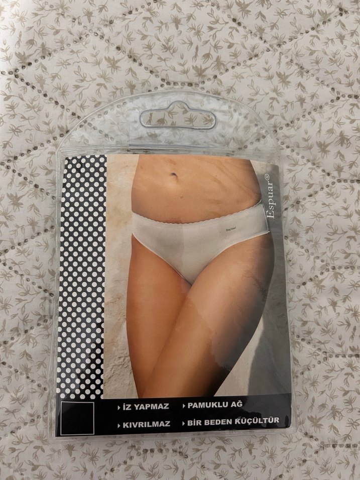 Bej baskılı kısa kadın iç çamaşırı, yumuşak pamuklu kumaştan, kıvrılmaz ve iz yapmaz. Bir beden küçüktür.