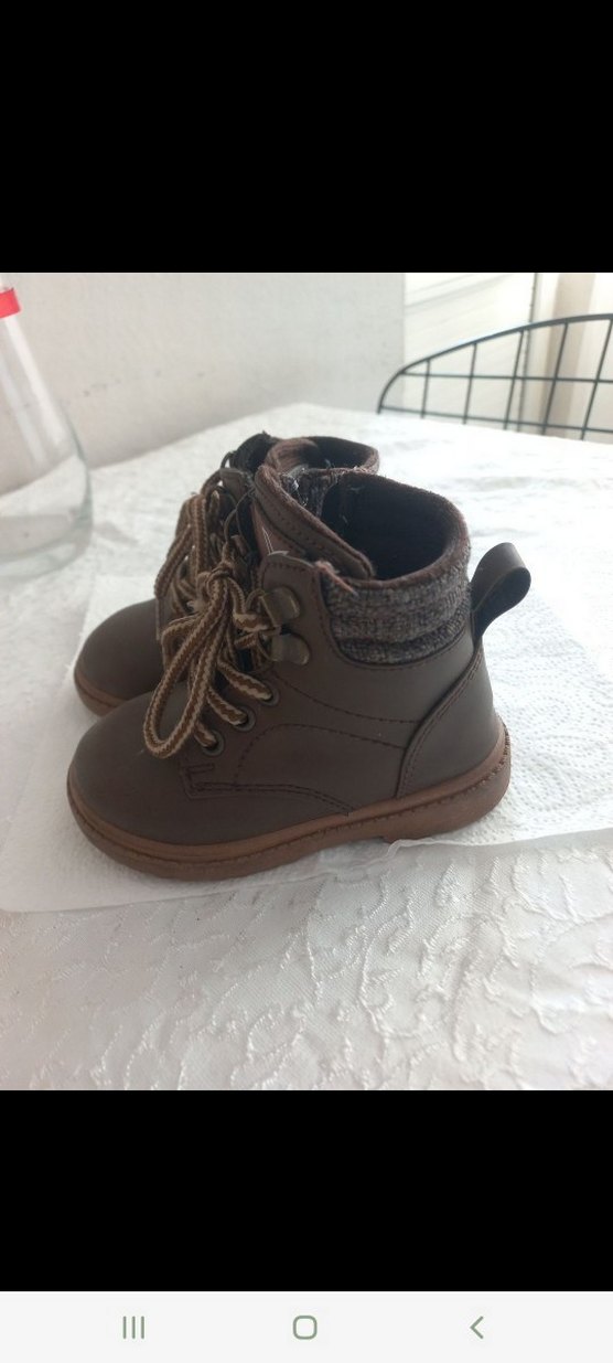 Kahverengi,bağcıklı ve fermuarlı erkek çocuk bot. cok rahat biz cok severek kullandik ogluma.temiz durumda. sagdaki cekme halkasi sokuldu sadece dikilebilir veya yapistirilabilir.kullanima engel degil.