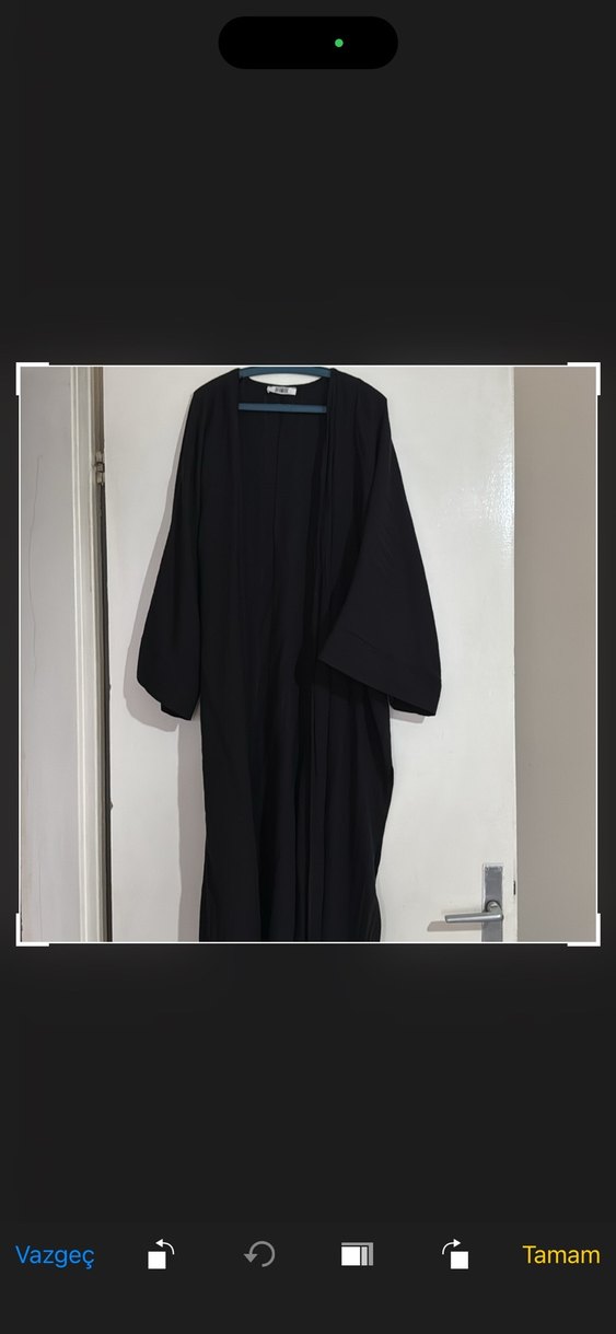 Siyah renkte, uzun kollu ve uzun boyda, minimalist tarzda kadınlar için normal kesimde bir elbisedir. Desensiz ve sade görünüme sahiptir. Fotoğrafta göründüğü gibidir arka kısmknda beyaz bir şey var çıkmıyor başka bi sorunu yoktur