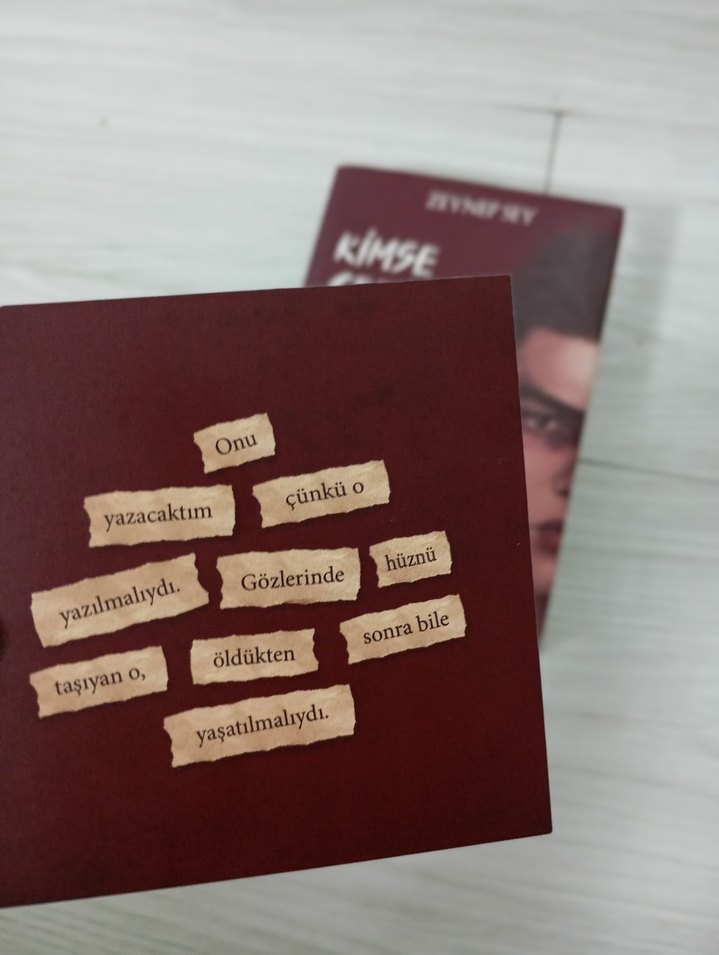 Zeynep Sey'in ciltli "Kimse gerçek değil" adlı romanı , görseldeki ayraç hediye .