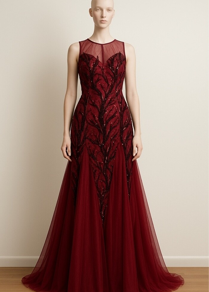 Siyah bordo pullu İç destekli Balık desenli Böğüs kısmı tüllü Gizli fermuarlı Hiçbir deformasyonu yoktur 1 kez giyildi Özel dikim 3000 tl ye aldım 1255 tl ye bırakıyorum