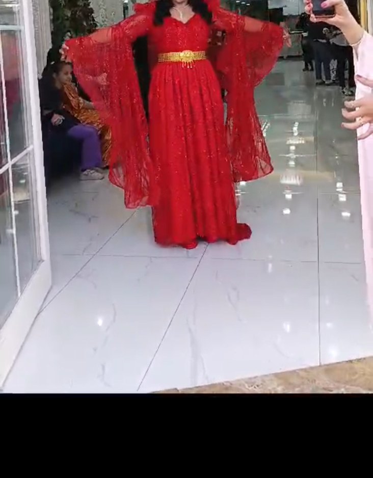 Kırmızı, boncuklu kumaştan, V yakalı, uzun kollu, vücuda oturan kına elbisesi. yöresel kıyafet. bir kere kınamda giydim