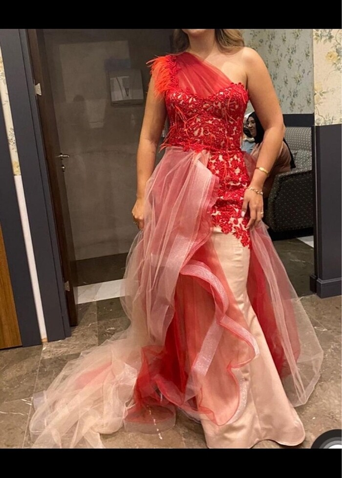 Sadece kınamda bir kez giyildi arkası bağcıklı olduğundan ayarlamak kolay olabilir 36-38 bedene uygundur