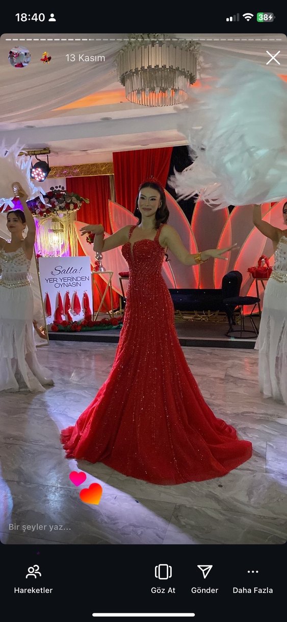 Kınamda ortalama 2-3 saat giyildi temiz kullanım Tarlatanı vardır. Marka; Aysira. İşlemeleri ve duruşu çok kalitelidir.