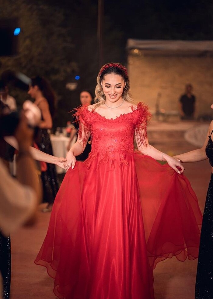 Kına gecemde 1 kez giydim 38 beden uyumlu 168 boy 10 cm topuklu ile giyildi tarlatanı yoktur hafif bi elbise içinde rahat hareket edilebilir