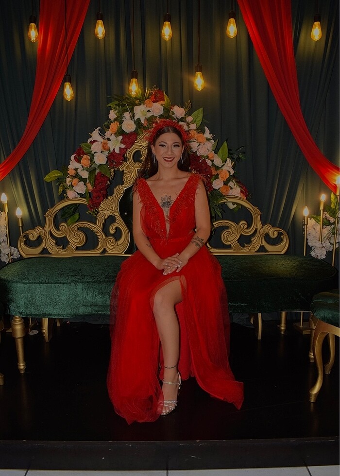 (Kırmızı)Kına gecem de giydim. Kusursuzdur. Tacıyla beraber göndereceğim. 38 beden ama 36 ve 40 bedene de tam olur. Belinde tül vardı. Söktüm. Böyle daha hoş :)