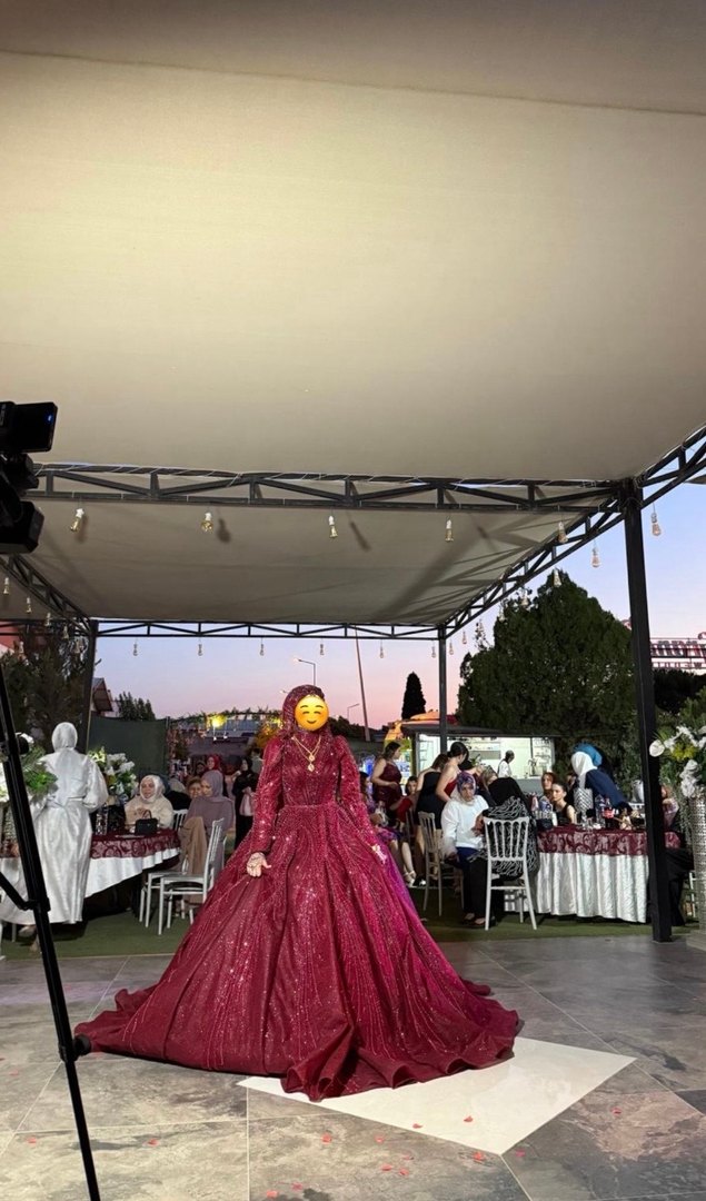 Bordo renkli, uzun kollu ve V yaka olan bu abiye, drapeli detayları ve vücuda oturan kesimiyle dikkat çekiyor. Parlak ve desenli kumaşı bohem ve göz alıcı bir tarz sunar.