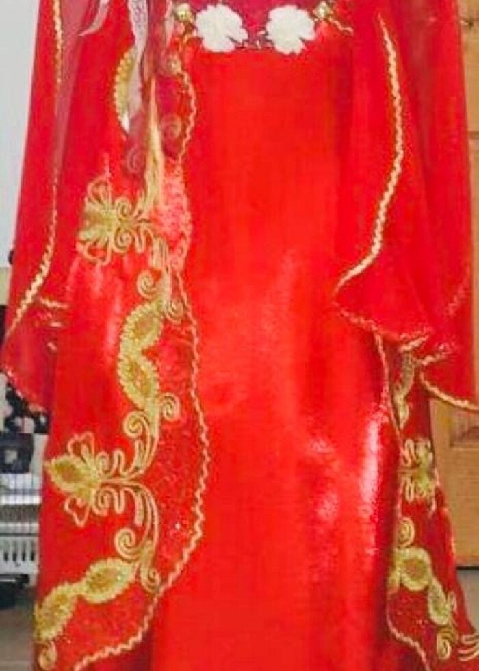 2 saat giyilmiştir. Kolları tül yırtmaçlı. 40-42 bedene uygun olacaktır. İki kol arası 40cmdir. Kaftanın önünde iki düğmesi var. İçinde askılı önü işlemeli bir elbise var. (Görsel ekledim) Başa takılan tülü ile birlikte verilecektir. Şimdiden mutluluklar dilerim alana