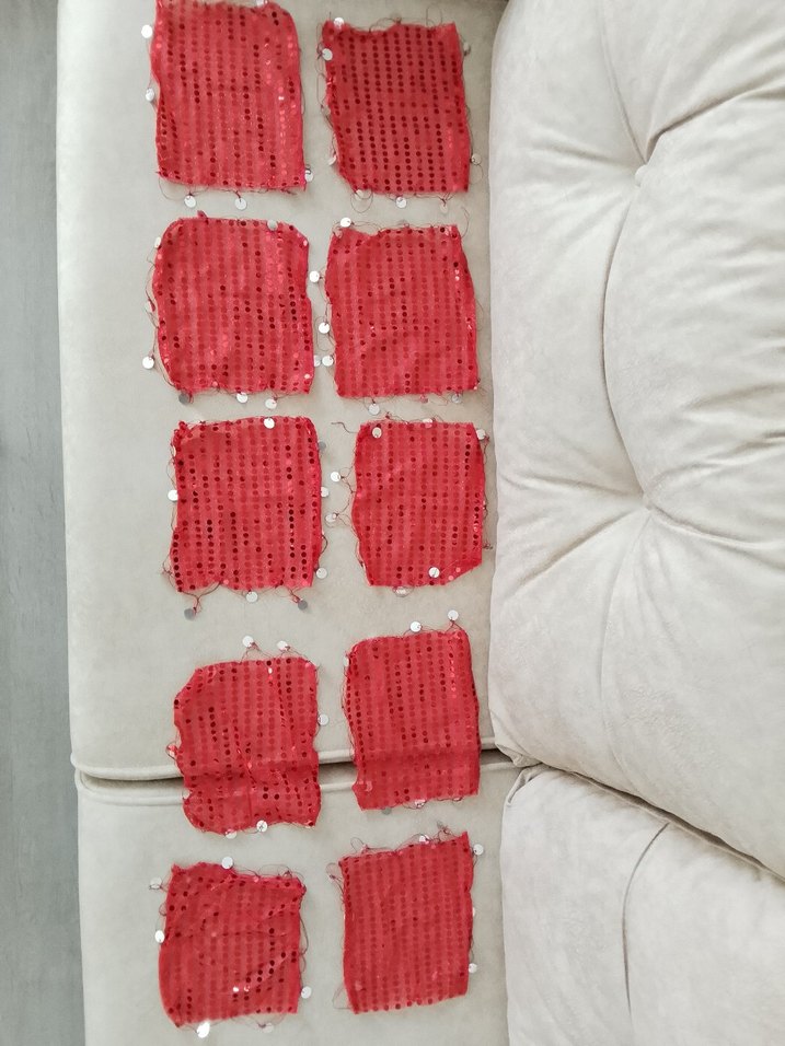 Parlak kırmızı, işlemeli desenli 10 adet kına mendili.