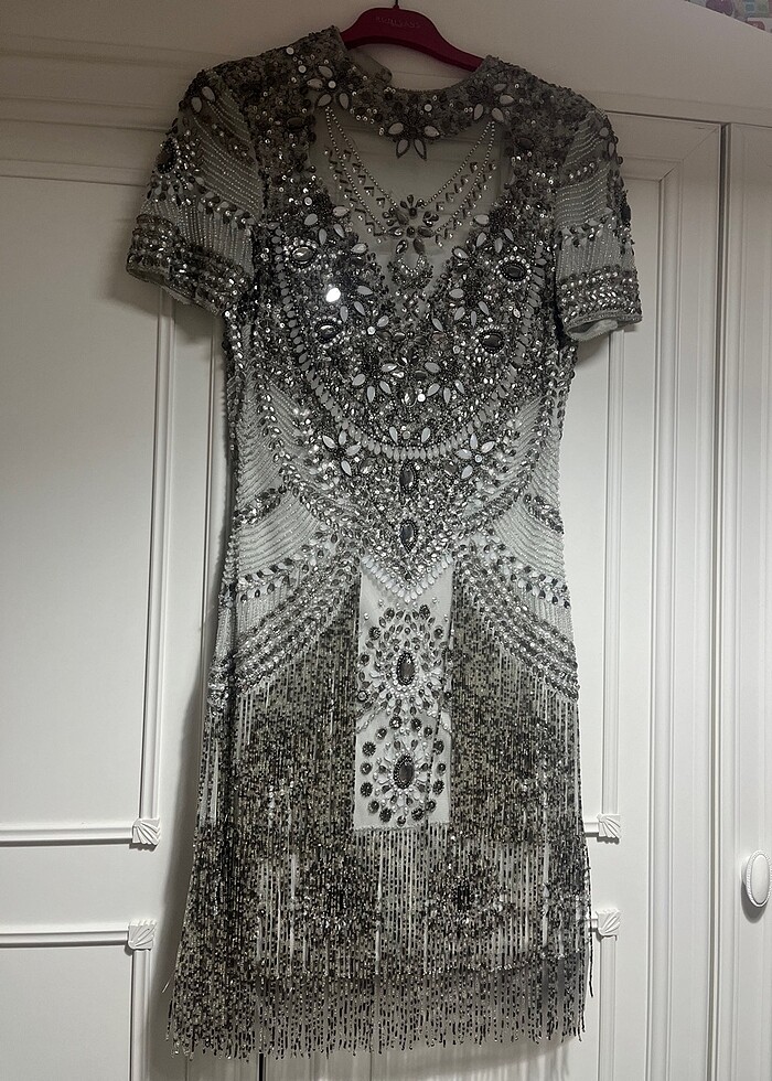 36 beden Kına gecesinde 2. Elbise olarak 1 saat giyindim Tamamen boncuk işlemedir. nişan/ kına /After parti için kullanabilirsiniz. her görenin çok beğendiği bir elbisedir. Etek kısmına bir kat tül ile uzatma yapıldı istenirse sökebilirsiniz.