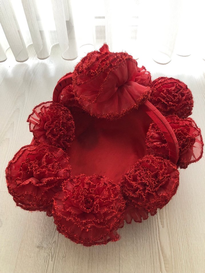 Bordo simli ponpon kona sepeti