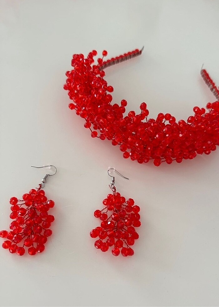 Çok şık kına tacı kırmızı takım küpesi de hediyemdir