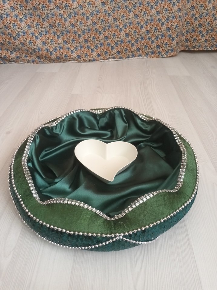 kina gecesi Sünnet gecesi için kullanima uygun sadece 1 defa kullanıldı hiçbir sorunu defosu yok yeni alinmiş gibi İşlemeli detaylara sahip parlak yeşil geliri ile kedi maması alıcam