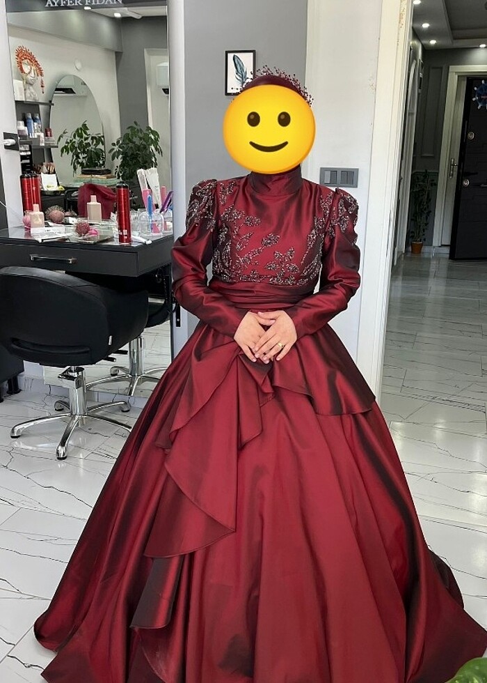 Kınamda bir kere giyildi kusursuz rengi çok güzel çok şık ister tarlatanlı ister tarlatansız kullanılır . Hennin marka