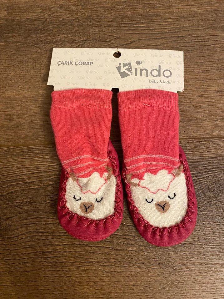 Kindo Pembe Nakışlı Kız Çocuk Örgü Ev Çorabı