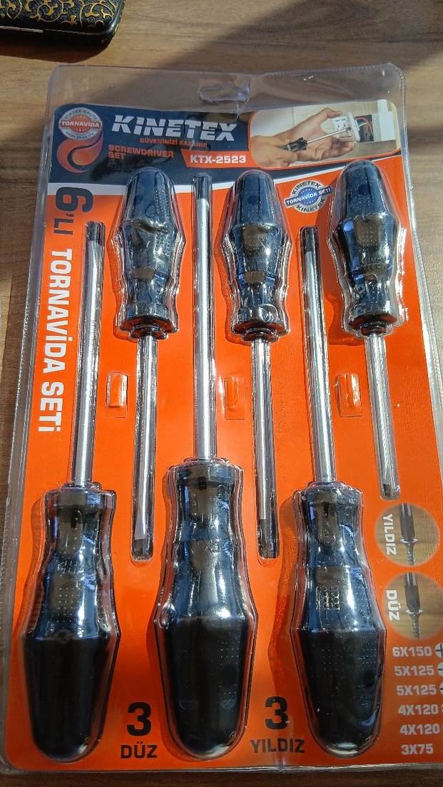 Kinetex markalı, farklı boyutlarda 6 adet turuncu saplı tornavida seti. Çeşitli işler için uygundur. ️