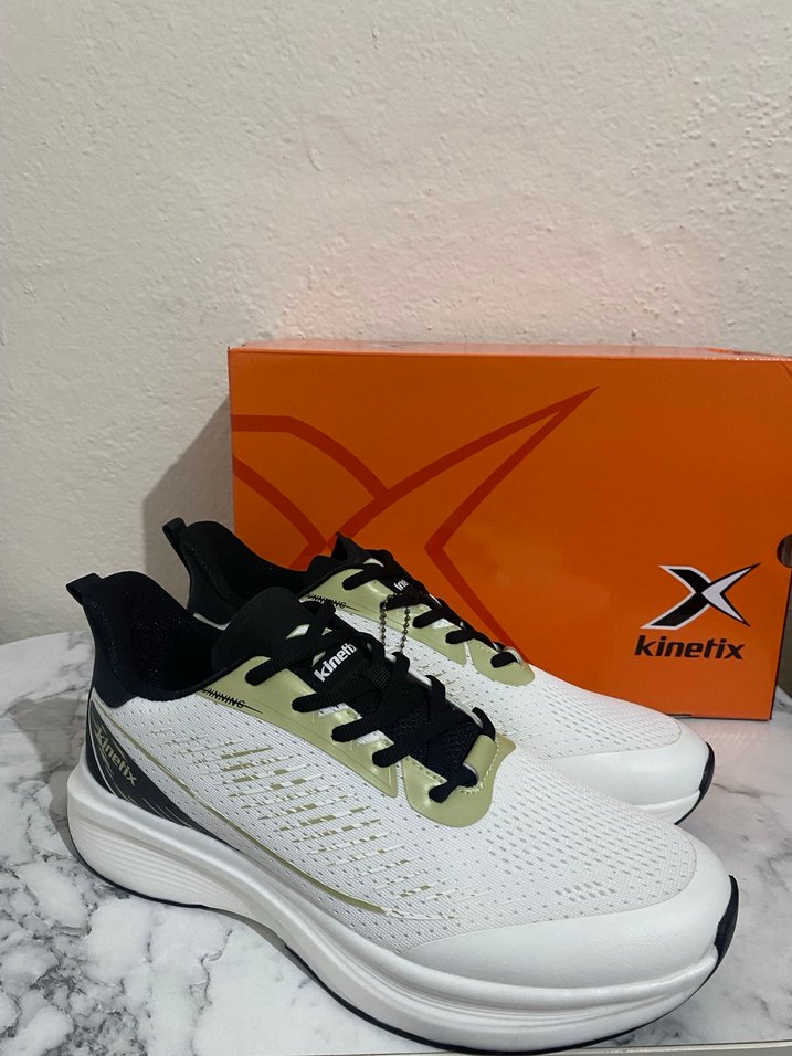 Kinetix markalı, beyaz tabanlı, hafif yılan desenli ve bağcıklı erkek spor ayakkabısı, kauçuk tabanlıdır. ♂️