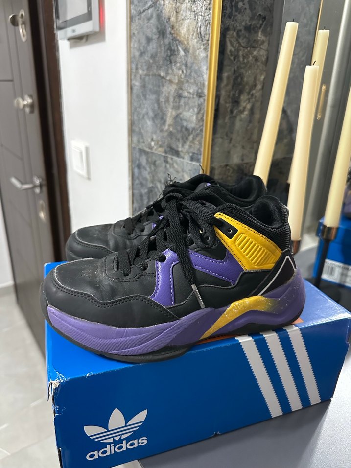 Kinetix marka, bağcıklı, mor ve siyah tonlarda tie-dye desenli
