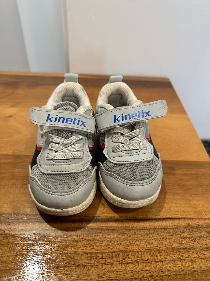 Kinetix gri renkli, cırt cırtlı erkek çocuk spor ayakkabısı. Lastik tabanlı, çizgili tasarımlı, rahat ve trend sokak stili için uygun.