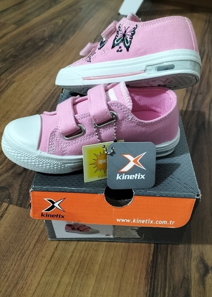 Yeni etiketli kutulu sıfır keten Converse tarzı kız cocuk cicek nakış işlemeli ışıklı ayakkabı. 26 numara.