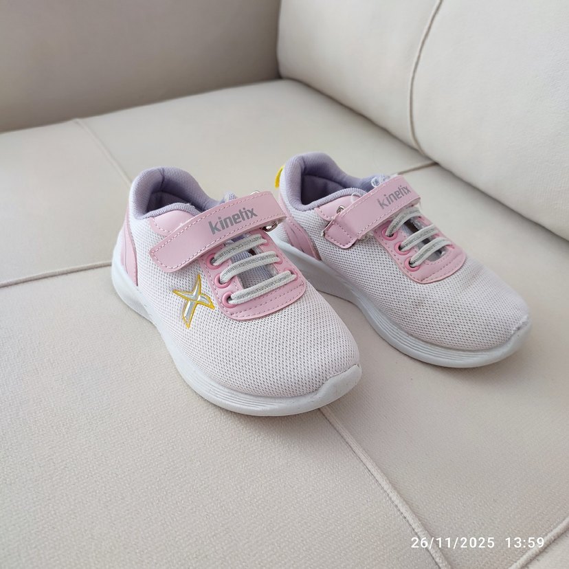 Kinetix kız çocuk spor ayakkabısı, pastel pembe renk, baskılı desen ve cırtlı kapanışa sahiptir. Rahat, trend sokak stili için uygundur.
