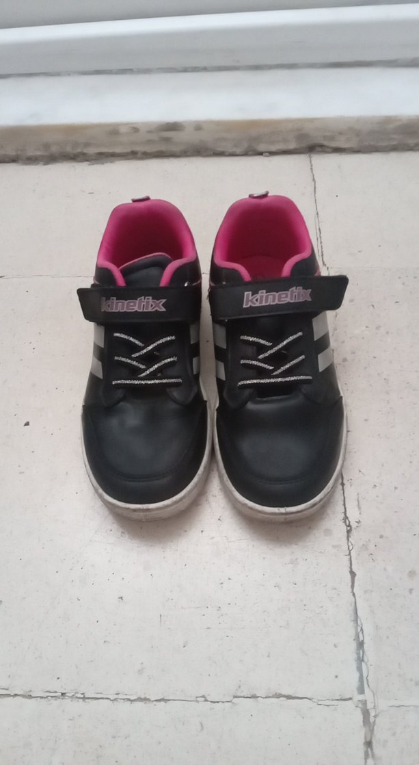 Kinetix kız çocuk spor ayakkabısı, lastik taban, cırt cırtlı ve çizgili desenlidir. Renkli, trend sokak stili ve pembe iç detaylar sunar.