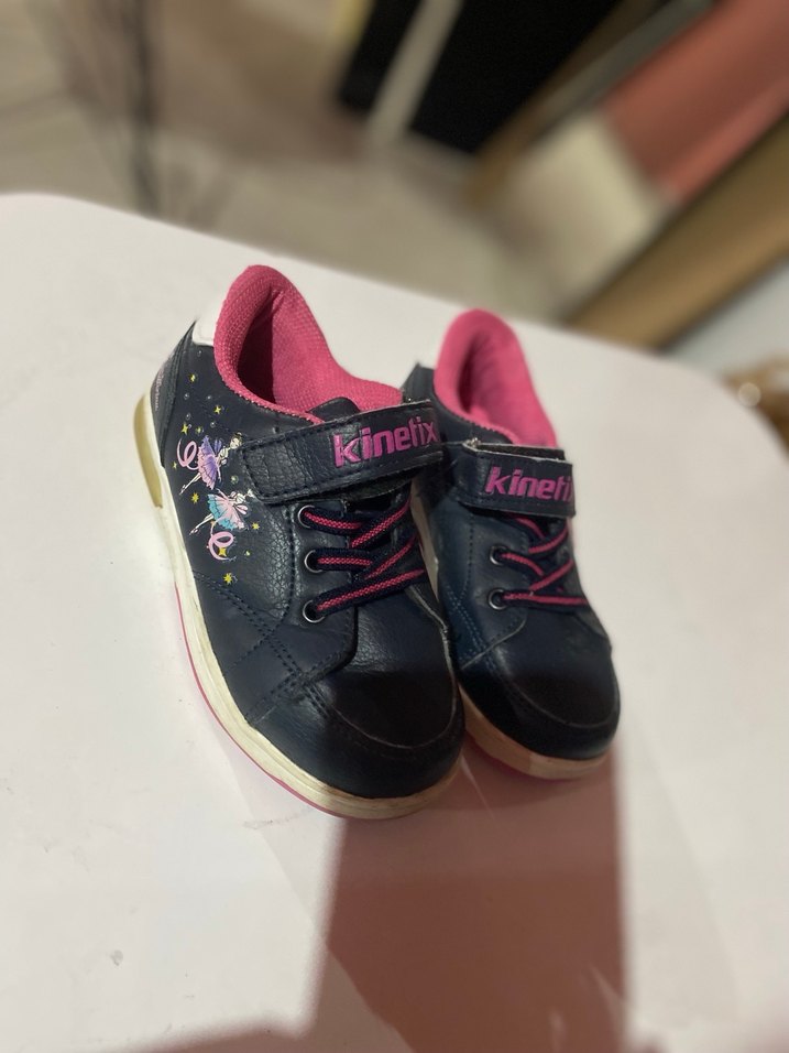 Renkli baskılı ve cırt cırtlı kız çocuk spor ayakkabısı, kauçuk tabanlı, Kinetix markalı, sokak stili için uygun. Işıkları yanmıyor
