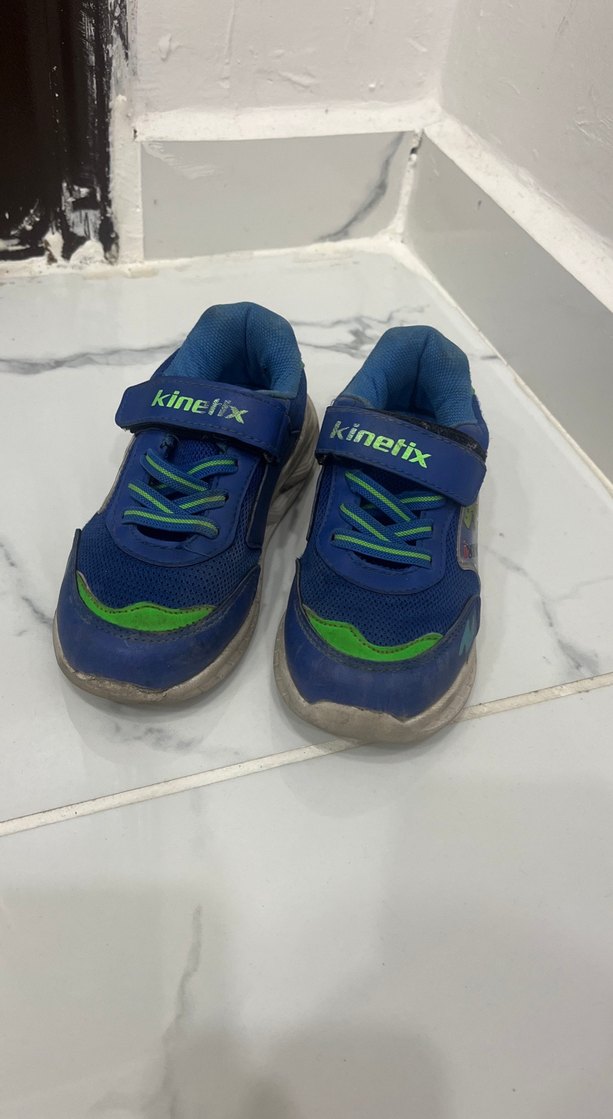 Kinetix marka, renkli baskılı detaylara sahip mavi erkek çocuk spor ayakkabısı. Cırt cırtlı ve kauçuk tabanlı, rahat ve trend sokak stili.