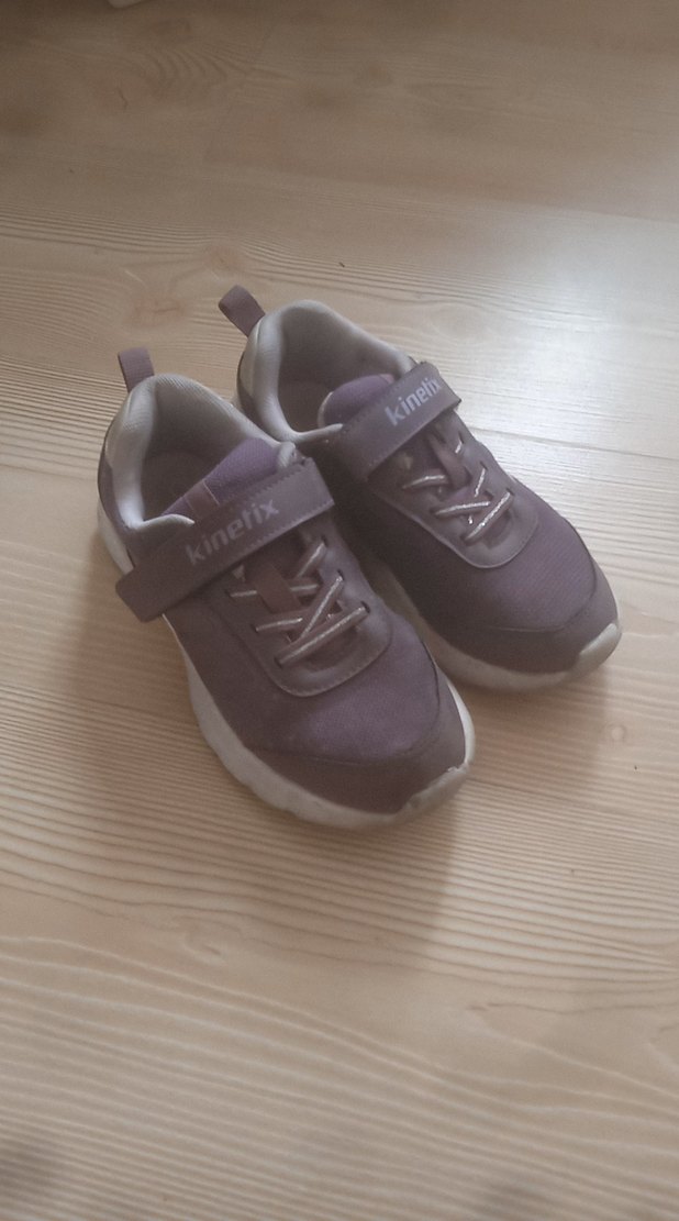 Kinetix markalı mor kız çocuk sneakers, cırt cırtlı ve kauçuk tabanlı, gri tonlarda rahat ve normcore tarzda. az kullanıldı herhangi bir sorun yok