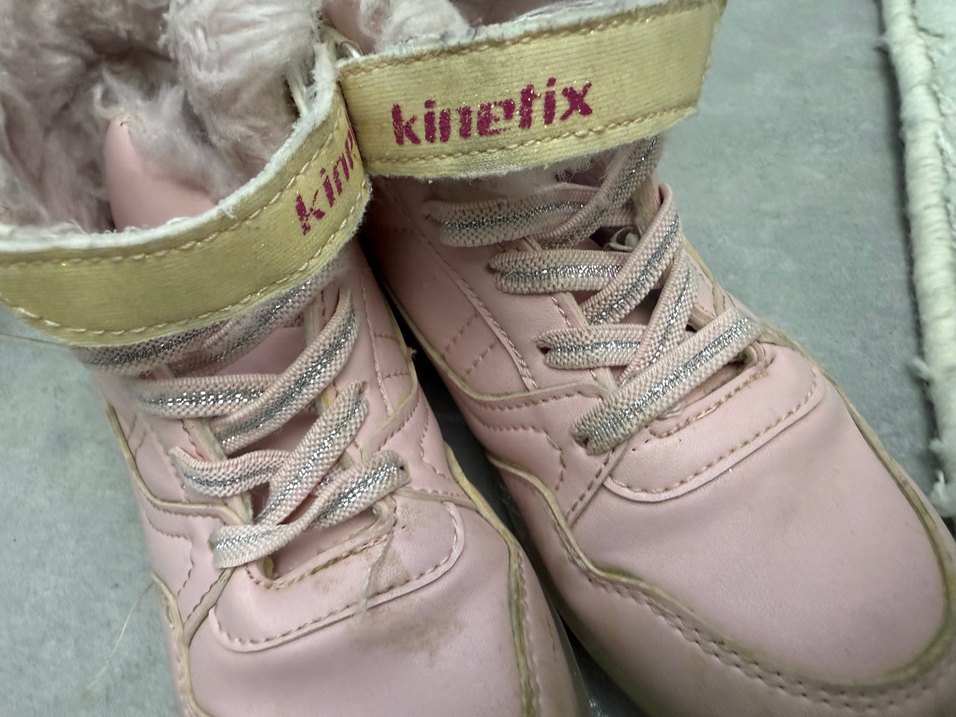 Kinetix markalı, tokalı ve pembe renkte kız çocuk spor ayakkabısıdır. Pastel tonlarda, düz ve kauçuk tabanlıdır. 26 numara kız çocuk botu ufak renk solmaları dışında hiç bir sorunu yoktur