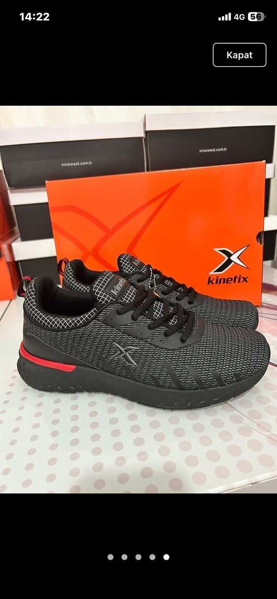 Kinetix siyah bağcıklı spor ayakkabı, baskılı desenli ve ince topuklu, kauçuk malzemeden üretilmiştir. Trendy sokak stili için uygundur. 41 numara yeni aldım ayağımızı sıktığı için hiç giymeden satıyorum