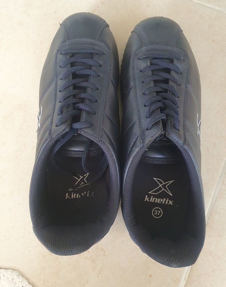 Kinetix marka siyah bayan spor ayakkabısı, koyu renk bağcıklarla, 37 numara, iç kısmında Kinetix logosu bulunur.
