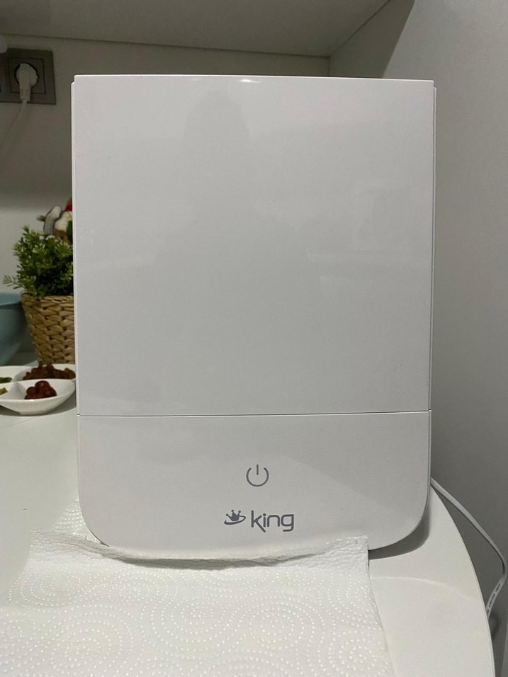 King beyaz hava temizleyici ve nemlendirici, güç düğmeli sade tasarımı ve kompakt boyutuyla hava kalitesini ve nem seviyesini artırır. E bebekten alındı kızım buyudugu ıcın satıyorum ıhtıyacımız kalmadı sorunsuz tertemız