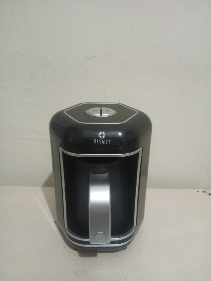 KISMET kahve makinesi siyah ve gri renklerde, modern kulplu tasarıma sahiptir ve taze kahve demlemek için uygundur. ☕
